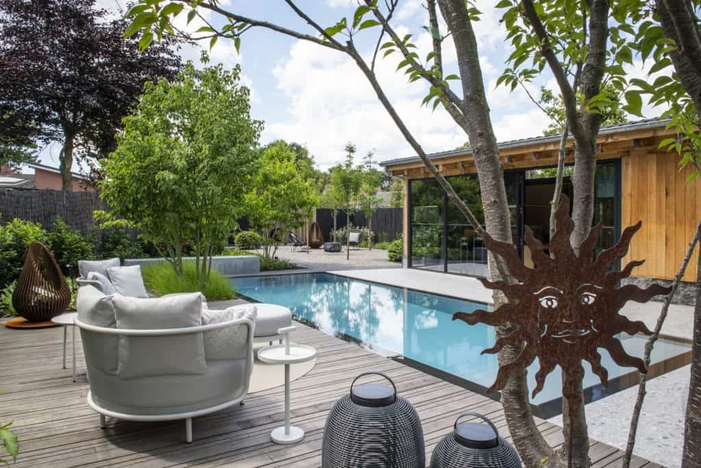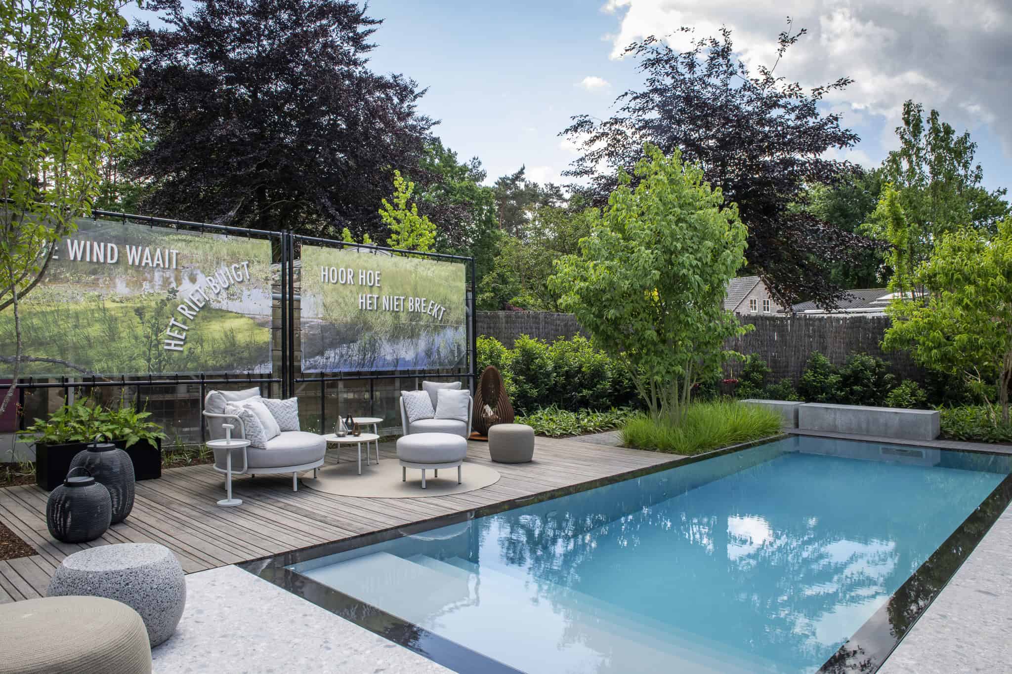 De completo loungetrap nodigt uit tot ontspannen genieten en maakt van de instap een subtiele designstatement. Voor extra beleving werd het zwembad uitgerust met een Binder tegenstroom, perfect voor wie sport en ontspanning wil combineren.